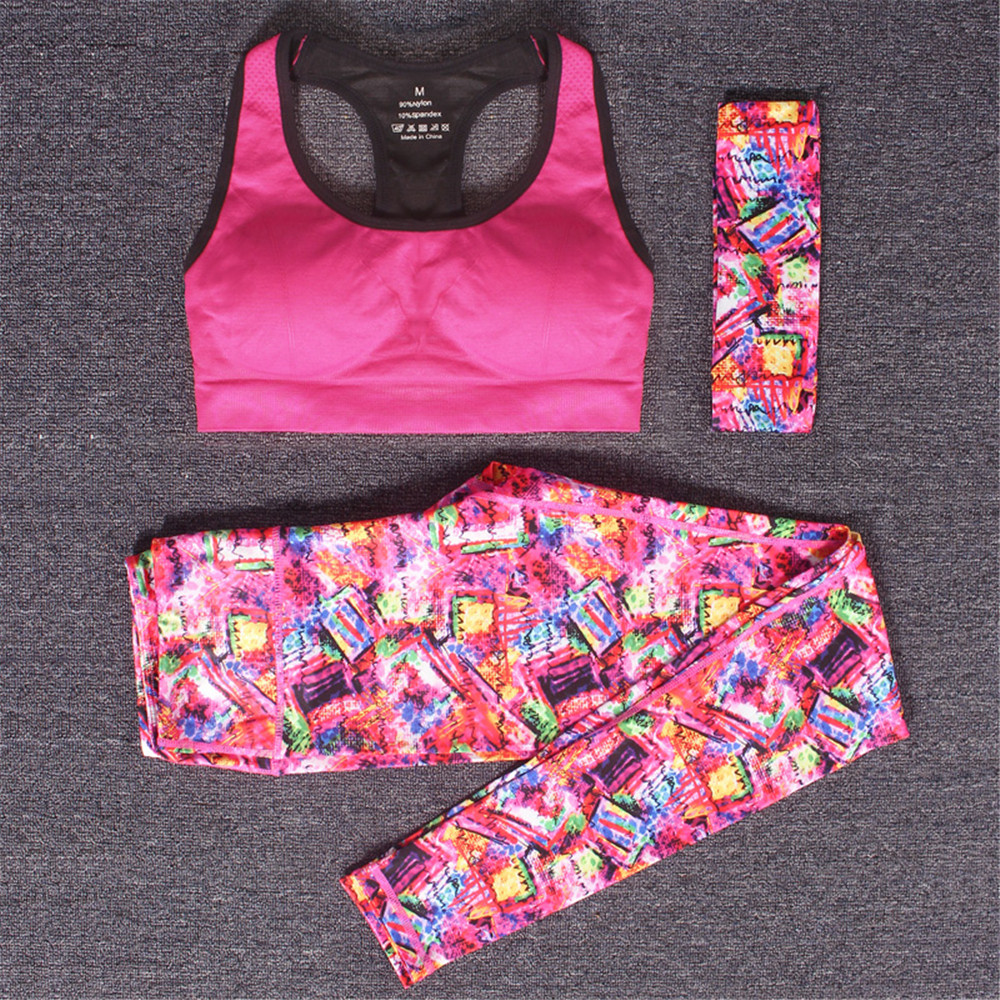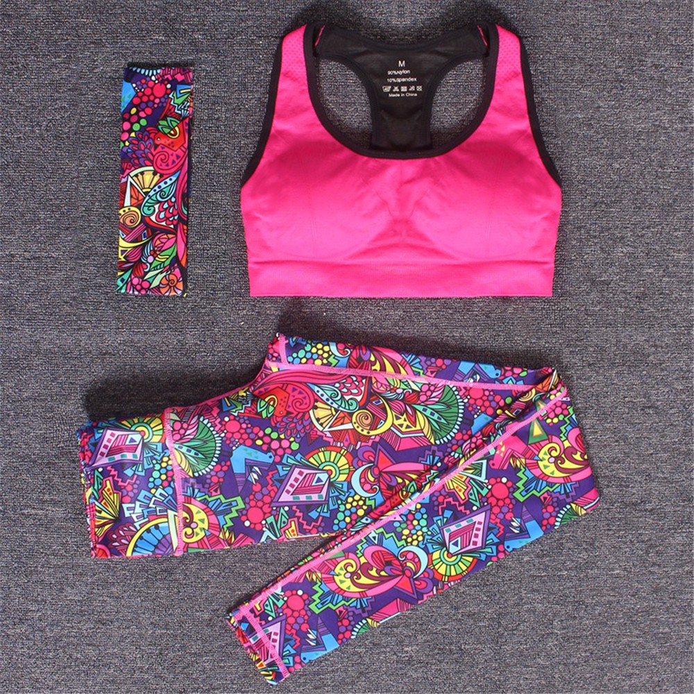 Women Sport Yoga Set For Gym Running Sport Suit Elasticity Fitness Clothing Workout Sport Wear Sports Bra+Print Pants+Bandeau